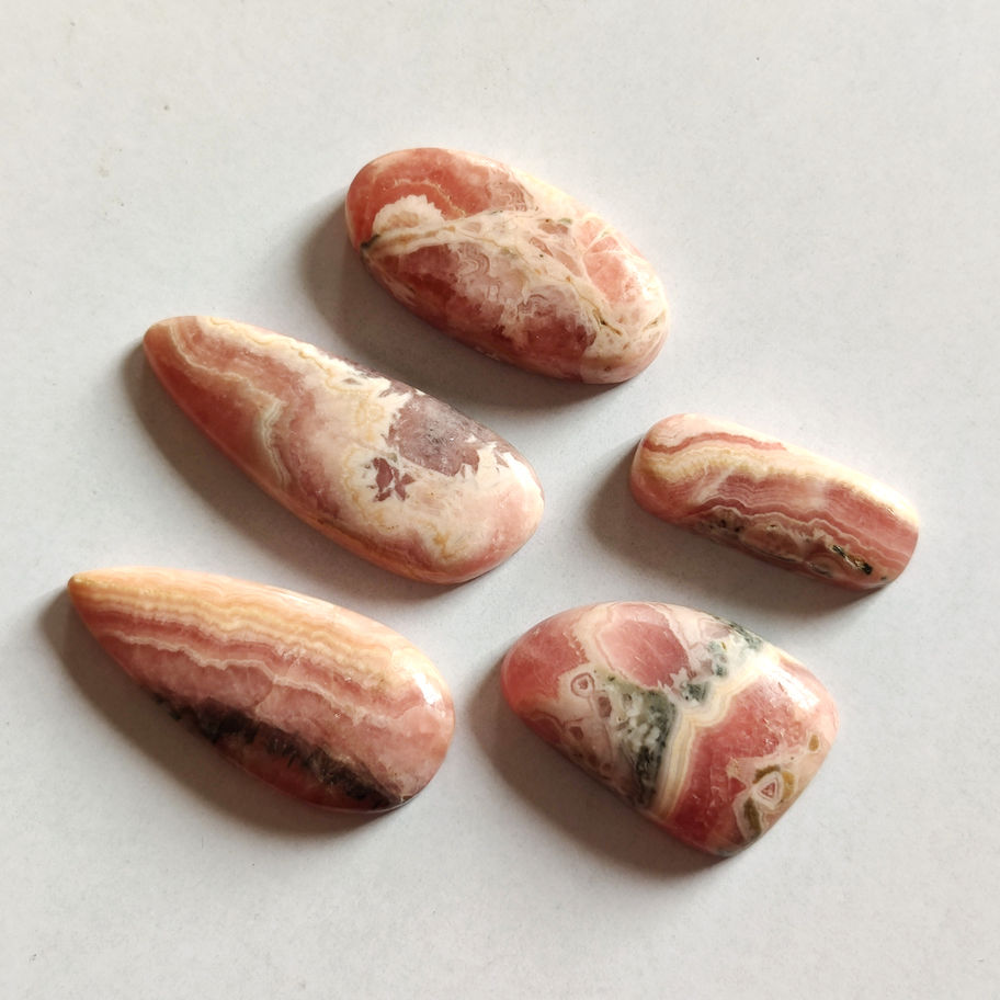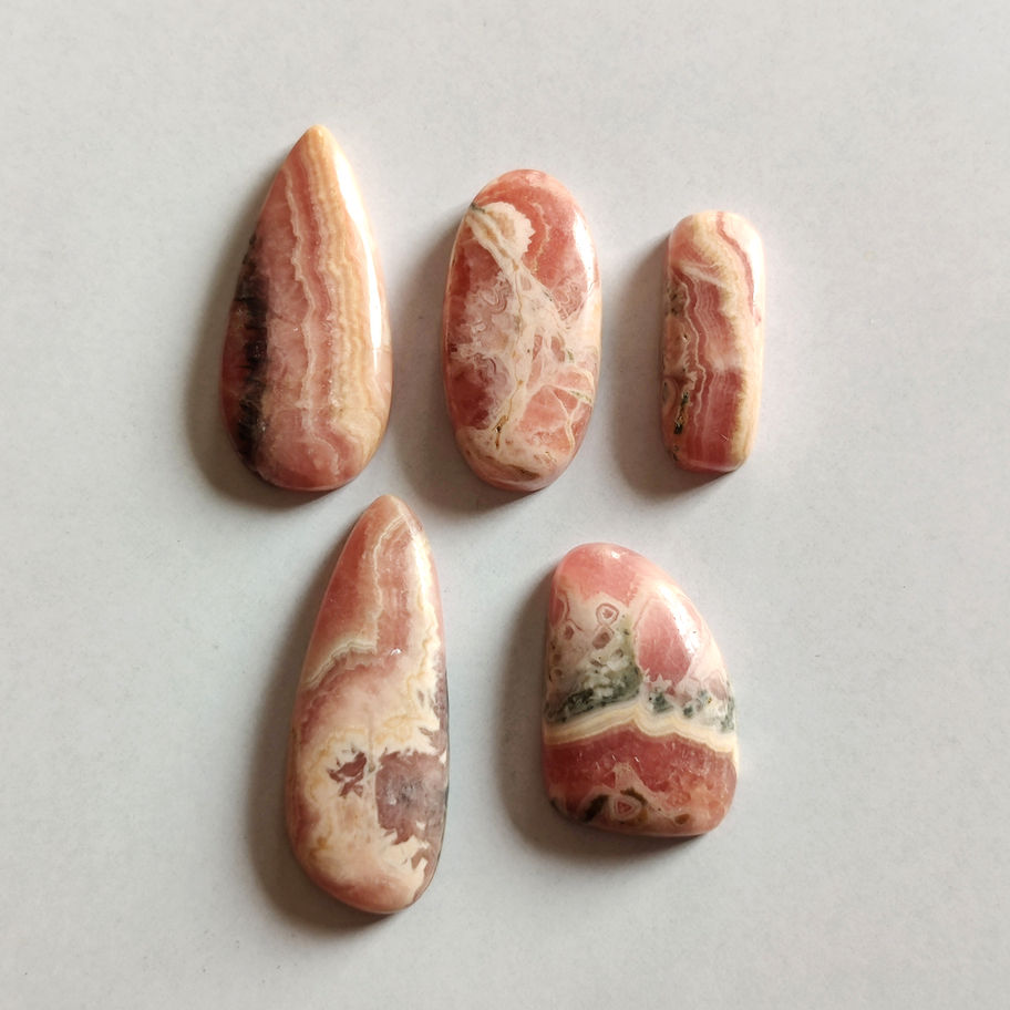 The 124CT Natural Rhodochrosite Gemstone Cabochon collection from Kazim Gems features five impeccably polished pieces, each uniquely shaped in pear, fancy, or oval designs. With sizes ranging from 32X14X4MM to 23X16X5MM, these cabochons are perfect for your high-quality jewelry-making projects. Each stone mirrors Kazim Gems' commitment to providing good natural quality gemstones, ensuring you get the best for your creations. As wholesalers and manufacturers, we prioritize superior craftsmanship and customer satisfaction. ITEM CODE: 15806/15803—add these stunning rhodochrosite gemstones to your collection today!