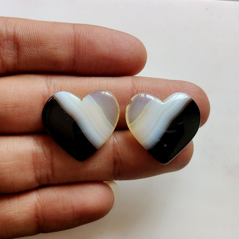 Elevate your jewelry collection with our 2Pcs Lot Heart Shape Banded Agate Gemstones, crafted to perfection. Each gemstone measures 22X24X4MM, with a weight of 38.00 and displays the captivating beauty of natural, good quality banded agate. These cabochon gemstones (Item Code: 16285), have not been faceted, preserving their natural charm and authenticity. Perfect for creating bespoke pieces, they represent the love and care Kazim Gems invests in supplying superior natural precious and semi-precious gemstones. As wholesalers and manufacturers, we also cater to unique customer demands, ensuring each piece is tailored to perfection.
