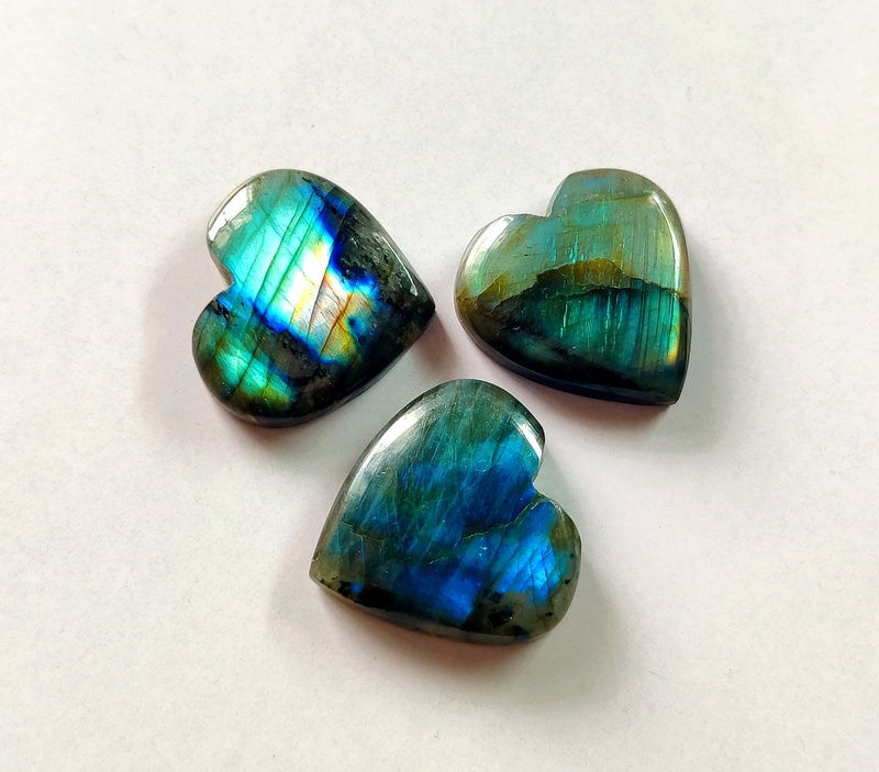 3Pcs Lot Heart Shape Labradorite Gemstone Loose Cabochon Jewelry Making Pendent