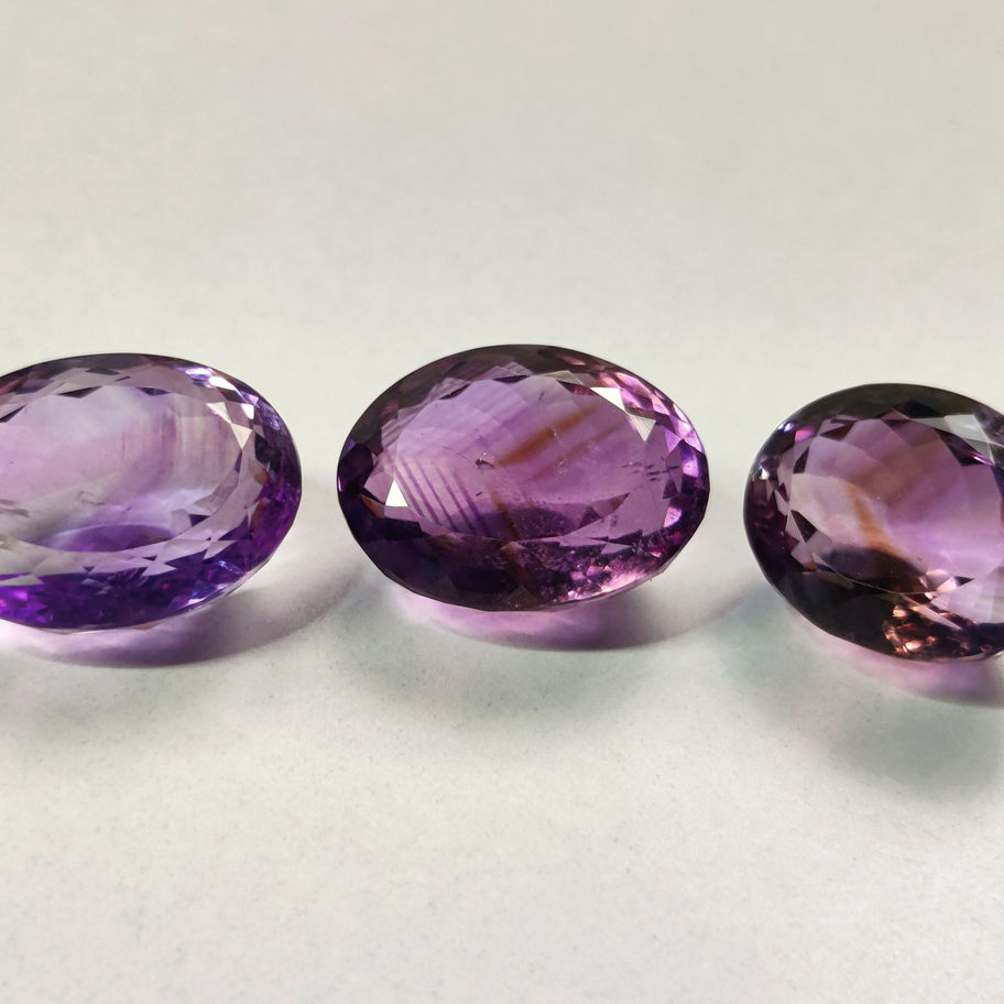 Elevate your jewelry creations with our 40Ct Purple Amethyst Gemstone set, featuring three high-quality, natural amethyst stones. Each remarkable facet showcases a stunning oval shape, sized at 17X12X8MM and 15X12X8MM, perfectly crafted for a brilliant finish. With a combined weight of 40.00 carats, these faceted gems exude a captivating violet hue. At Kazim Gems, we pride ourselves as wholesalers and manufacturer suppliers of precious and semi-precious gemstones, including customized stones on demand. Item Code: 17861 ensures you are getting an exceptional product tailored for your unique crafting needs.