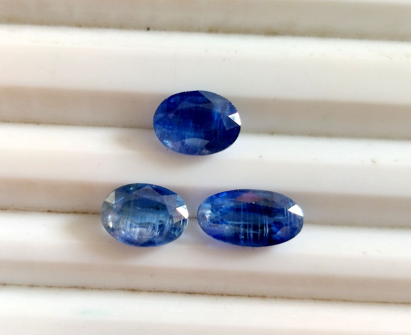 Discover the allure of AAA Quality Natural Blue Kyanite gemstones at Kazim Gems. Each high-quality, polished, oval-shaped Kyanite (Item Code: 15526) measures 9x5x4mm/8x5x3mm and weighs 5.00 carats. This set includes three faceted pieces, ideal for creating striking jewelry. Sourced naturally, these gemstones embody the pure essence of Kyanite's mesmerizing blue hue. As a trusted wholesaler and manufacturer supplier of precious and semi-precious gemstones, Kazim Gems is committed to offering unparalleled beauty and value in every piece.