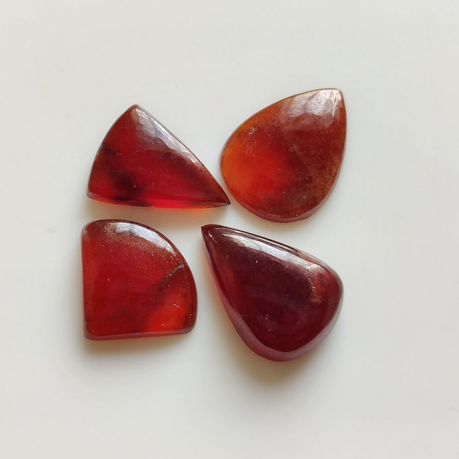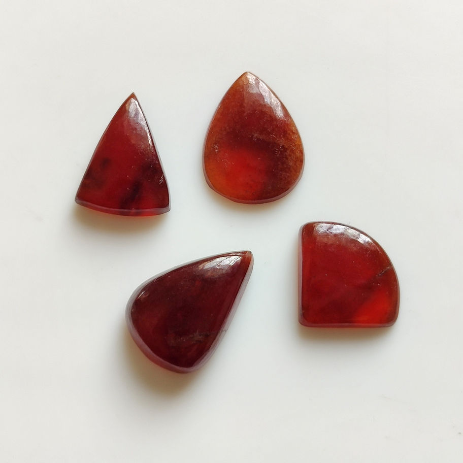 Discover the exquisite beauty of our AAA Quality Red Garnet Gemstones, perfect for elevating your jewelry creations. Each stone is a natural cabochon, un-faceted to showcase its pure, unaltered elegance. Available in pear, fancy, and tringle shapes, these 43Ct garnets come in sizes 19x13x5mm and 15x18x3mm. Item Code 16263 includes 4 pieces, each boasting good natural quality. At Kazim Gems, we are wholesalers and manufacturers dedicated to providing you with the finest natural precious and semi-precious gemstones, tailored to your custom needs.