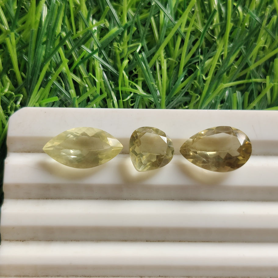 Elevate your jewelry collection with our AAA Quality Yellow Lemon Quartz Gemstone, perfectly faceted for added sparkle. Measuring 14X9X6MM and 9X9X6MM, these polished stones come in exquisite pear and marquise shapes, with a combined weight of 11.00 carats. Each set includes three pieces of good natural quality Lemon Quartz (Item Code: 17505), highlighting the brilliance and clarity our gemstones are renowned for. As a leading wholesaler and manufacturer supplier of natural precious semi-precious gems, Kazim Gems ensures you receive only the finest stones for your unique creations. Add a touch of sunshine to your designs with these vibrant Lemon Quartz gemstones.