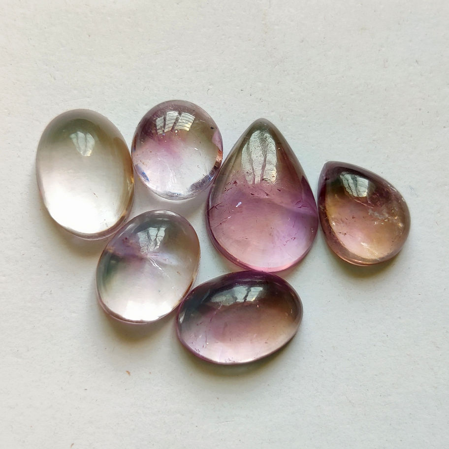Discover the exquisite allure of our High Quality Natural Amethyst Gemstone Cabochon 6Pcs Lot—crafted with meticulous care and precision. This collection features six amethyst gemstones, each handmade and free of lab creation, ensuring genuine and natural beauty. The pieces come in pear and oval shapes, with sizes of 18x13x5mm and 11x10x5mm, respectively, totaling a weight of 41.00 carats. Perfect for adding a touch of elegance to any jewelry design, these cabochons boast superior quality and a captivating charm. At , we pride ourselves on being wholesalers and manufacturer suppliers of natural precious and semi-precious gemstones, delivering only the finest to our clients.