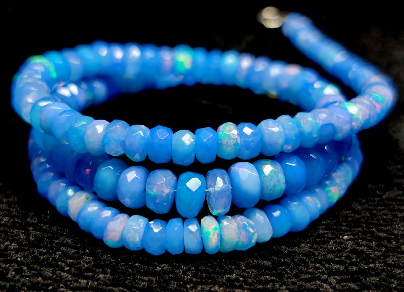 Natural Blue Ethiopian Opal Faceted 40Ct Beaded Necklace 16Inches Length