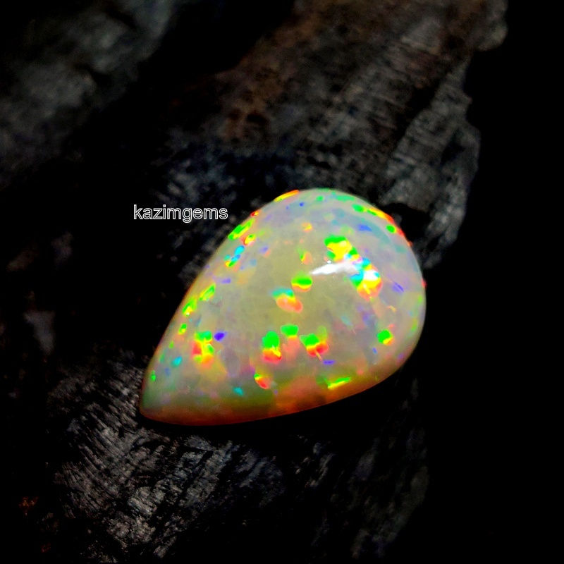 Discover the exquisite beauty of our Natural Ethiopian Opal Gemstone at Kazim Gems. This top-quality Welo Fire Opal, weighing 12.00 carats, showcases a mesmerizing play of colors in a perfectly polished pear-shaped cabochon. Measuring 20X14X10MM this gemstone boasts good natural quality, making it a perfect choice for a unique piece of jewelry or an addition to your collection. As a wholesaler and manufacturer supplier of natural precious and semi-precious gemstones, we ensure the highest standards of craftsmanship. Experience the unparalleled quality and service that make Kazim Gems a trusted name in the industry.
