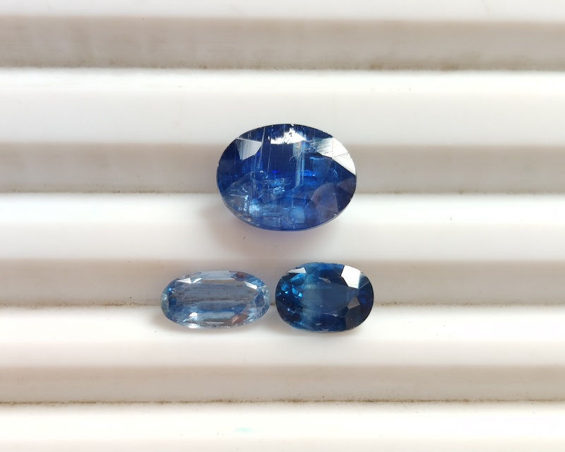 Introducing our exquisite Natural Kyanite Gemstone at Kazim Gems, available in a 5.00 Ct loose faceted form. Each gemstone is meticulously polished and shaped into an elegant oval, with sizes measuring 10x8x4mm and 7x4x2mm. These high-quality, faceted gems, item code 15533, come in a set of 3 pieces, ensuring versatility for your jewelry creations. As a trusted wholesaler and manufacturer supplier of natural precious and semi-precious gemstones, we pride ourselves on providing top-tier quality and craftsmanship. Elevate your jewelry designs with our stunning Kyanite gemstones today.