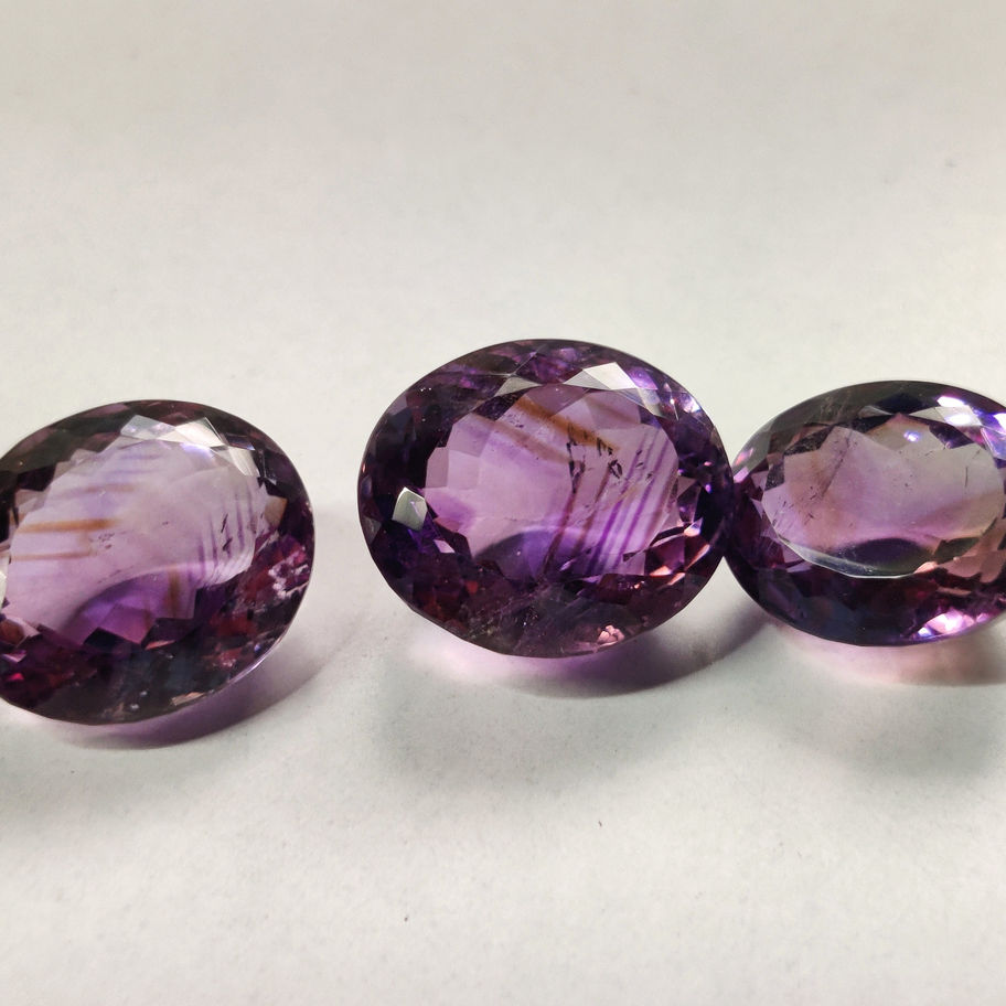 Discover the exquisite Natural Purple Amethyst Gemstone Lot, exclusively available at Kazim Gems. This collection includes 3 pieces of finely faceted, good quality amethysts, each displaying captivating oval shapes. With sizes ranging from 16x13x9mm to 15x11x10mm and a total weight of 42.00 carats, these gemstones are perfect for your bespoke jewelry creations. Item Code: 17873. As wholesalers and manufacturers, we pride ourselves on offering natural precious and semi-precious gemstones, tailored to your specific demands.