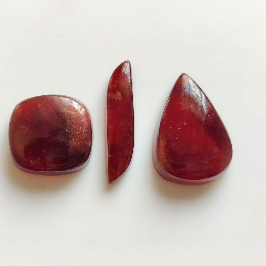 Discover the exquisite Natural Red Garnet 84Ct Gemstone Cabochon, perfect for jewelry making. Each piece, including sizes 30x7x4mm, 20x19x6mm, comes in pear, fancy, and square shapes, ensuring versatile design options. These cabochons boast a good natural quality with a combined weight of 84 carats, making them ideal for creating unique, high-quality jewelry. As wholesalers and manufacturers of natural precious and semi-precious gemstones, we guarantee authentic gemstones for your crafting needs. Item code 16255, available in sets of 3, caters to both individual and costume design requirements, reflecting our commitment to quality and variety.