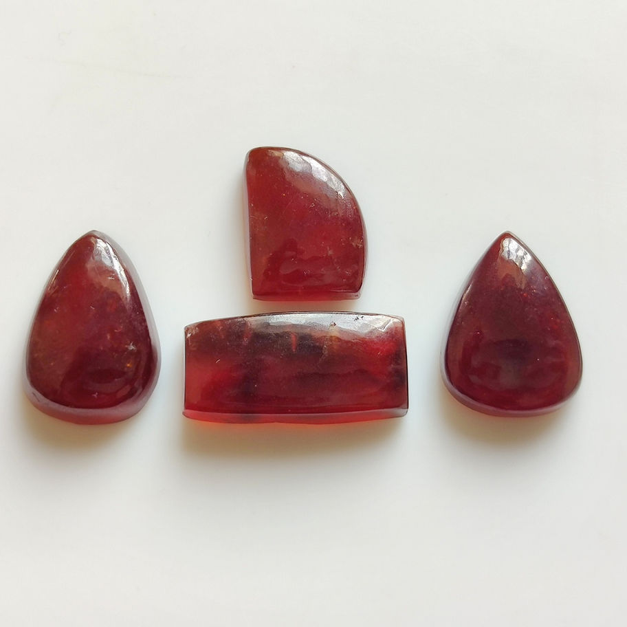 Discover the exquisite Natural Red Garnet Cabochon Gemstone, an elegant choice for your jewelry collection. Available in sizes 22x11x5mm and 16x12x4mm, these good quality red garnets come in pear, fancy, and rectangle shapes. With a total weight of 64.00 carats, these cabochons are a beautiful, natural addition to any pendant. Item code 16258, each package includes 4 pieces of these natural, un-faceted treasures. Kazim Gems is proud to be your trusted wholesaler and manufacturer supplier of precious and semi-precious gemstones, offering stones on COS for your convenience.
