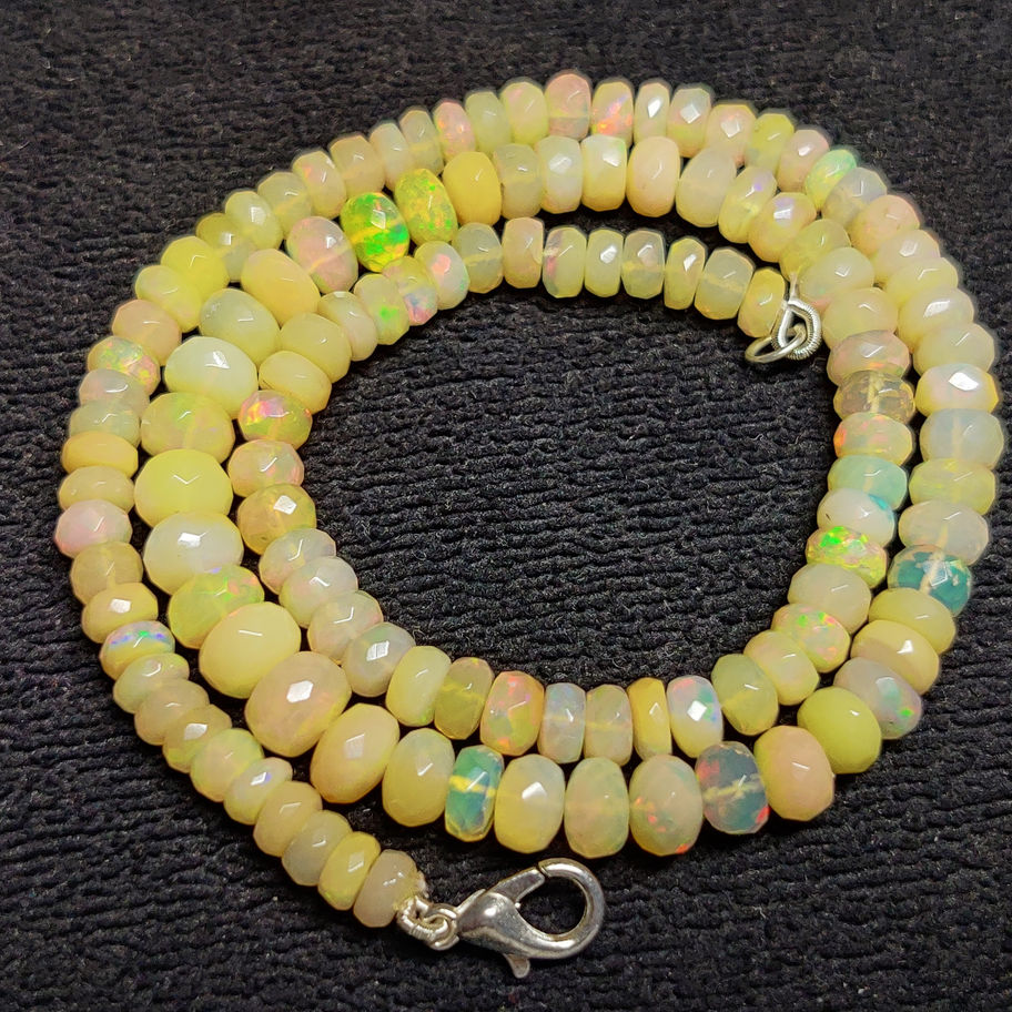 Opal Beaded Necklace Gemstone 70Ct High Quality Ethiopian Opal Faceted Necklace