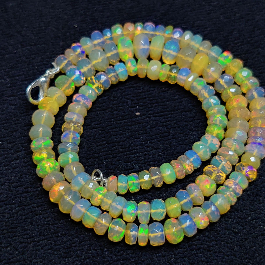 Welo Fire Ethiopian Opal Necklace 69Ct High Quality Opal Faceted Beads Necklace